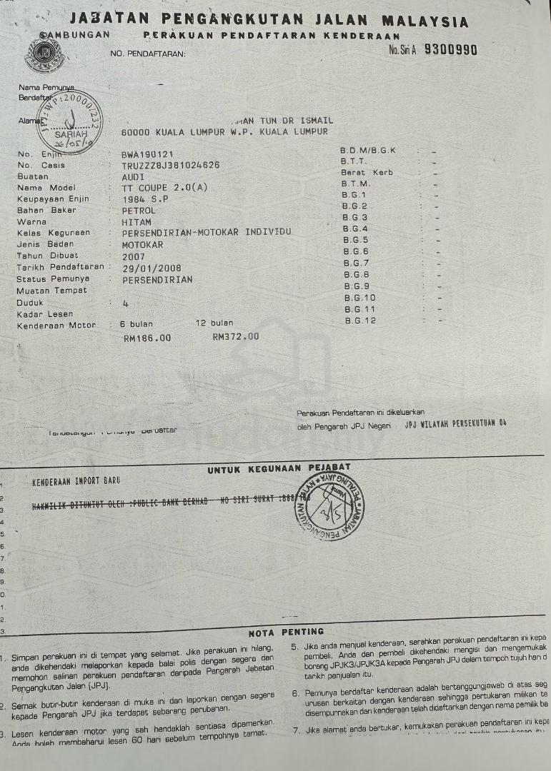 2007 Audi TT 2.0 automatic for sales !Imported brand new Doctor owner Original paint Original mileage 50,395 kmService record available Upgraded Android player Loc Damansara Call Mr Lewis 0162388150
