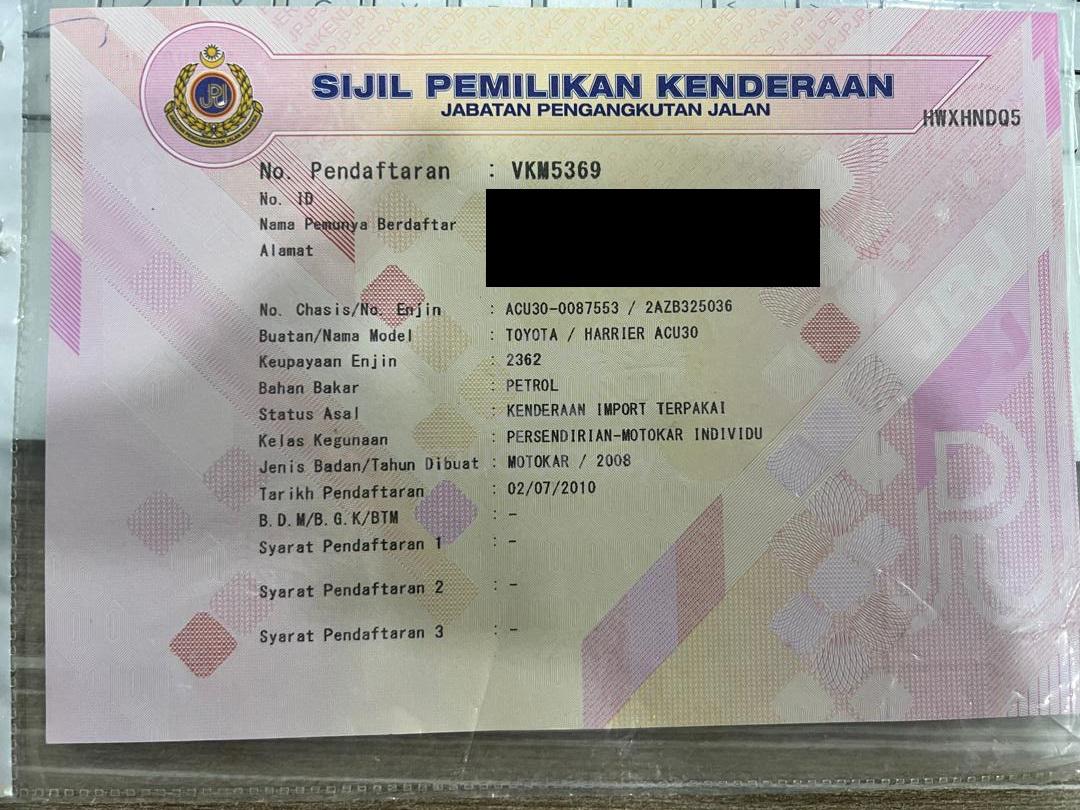 WELCOME TO HST AUTO SDN BHD* WE ARE TRUSTED USED CAR PLATINUM DEALER ** * TEST DRIVE AVAILABLE, BEST CAR IN TOWN * ** * * CARNIVAL MEGA SALES PROMOTION * * ** * * * WELCOME VIEW & TEST OUR CAR * * * *---------------------------------------------------------CALL NOW, FOR THE BEST DEAL:012-3071598 ( TAN )012-3120901 ( IZAM )---------------------------------------------------------HST AUTO SDN BHD PROMISE TO CUSTOMER:* WE CHECK, WE TEST, BEFORE WE SELL.* NO NEEDS REPAIR, JUST BUY & DRIVE.* GUARANTEE GRADE A CONDITION USED CAR.* GUARANTEE NOT INSURANCE CLAIM CAR.---------------------------------------------------------WE HAVE GOOD RELATIONSHIP WITH BANK PANEL.* 100% HIGH LOAN APPROVED.* LOW DOWNPAYMENT.* LOW INTEREST RATE.* FAST LOAN APPROVAL.---------------------------------------------------------MODEL: 2008/2010 TOYOTA HARRIER 2.4 PREMIUM L PACKAGE/ONE OWNER/ORI PAINT/SUNROOF/LEATHER SEATS/ELECTRONIC SEATS/POWER BOOT* SERVICE RECORD* REVERSE CAM* LEATHER SEAT* WELL MAINTAIN* NICE SPORT RIM* VERY TIP-TOP CONDITION* SUSPENSION EXCELLENT* CLEAN INTERIOR* AIR BAGS* ABS* ADJUSTABLE STEERING---------------------------------------------------------(BUSINESS FOR WORKING)DIRECTOR IC LICENSESSM / BORANG 9,24,496 MONTHS BANK STATEMENTINCOME TAX(DOCUMENT FOR WORKING)ICDRIVING LICENSEPAY SLIP 3 MONTHSBANK STATEMENT 3 MONTHEPF UPDATED---------------------------------------------------------WE SALES PROVIDE:* FREE SAFETY TINTED RM 350 DISCOUNTS.* FREE FULL CAR POLISH & WAXING.* RENEWAL INSURANCE & ROADTAX.* TERM AND CONDITION APPLY*** WE ACCEPT FOR HIGH VALUE TRADE-IN!!!*** WE’RE SINCERELY AT YOUR SERVICE!!!*** KINDLY CONTACT US FOR BEST DEAL!!!*** THANKS FOR YOUR SUPPORT!!!-------------------------------------------------------------**** DOCUMENT FOR WORKING ****1. IC2. DRIVING LICENSE3. PAY SLIP (LATEST) (3 MONTHS)4. BANK STATEMENT (LATEST) (3 MONTHS)5. EPF**** BUSINESS FOR WORKING ****1) DIRECTOR IC LESEN2) 6 MONTHS BANK STATEMENT (LATEST)3) SSM / COMPANY REGISTRATION DOCUMENT------------------------------------------------------------SHOWROOM ADDRESS :HST AUTO SDN BHDSELANGOR TURF CLUB,LOT T, SUNGAI BESI AUTO WORLD,JALAN KUDA EMAS, JALAN SUNGAI BESI,57000 KUALA LUMPUR.GPS LOCATION: (Google Map & Waze)1) SUNGAI BESI AUTO WORLDBUSINESS HOUR: 10.00 AM - 6.30 PM* DAILY OPEN (INCLUDING HOLIDAY)------------------------------------------------------------HST AUTO SDN BHD