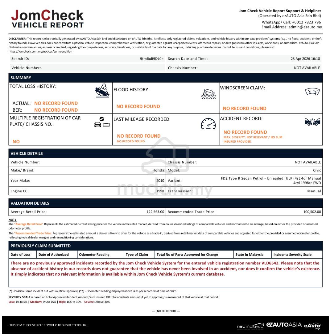 ♨️ 2026 SUPER PROMOTION ♨️📌 2010 Honda CIVIC 2.0 TYPE R (M) - PERFECT CONDITION - WELL MAINTAINED🤝 Trusted, transparency✔️ Inspected & Reliable💰 Best Prices | Easy Process🚗 Quality Used Cars | Honest Deals🚘 Helping you find the right car, not just any car📩 Message us to drive today!ℹKINDLY CALL OR WHATSAPP FOR MORE DETAILS📞 ALVIN- 011-11286008 / wa.link/l0xisj📞 DICKSON - 012-6726660 / wa.link/6deaqg📞 HAN - 010-2075871 / wa.link/j7j2tn🎁 FREE WARRANTY ( UP TO 3 YEARS )🎁 FREE TINTED VOUCHER🎁 FREE PROFESSIONAL WASH & POLISHING🎁 FREE CAR SERVICE ( ENGINE & GEARBOX OIL )🎁 FREE FULL TANK FUEL( TERMS AND CONDITIONS APPLY )✔️FAST LOAN✔️FAST DELIVERY ( 1 DAY )✔️LOWEST INTEREST RATE✔️HIGH TRADE INCAR GUARANTEE NOT ‼️❌FLOOD❌FIRE❌TOTAL LOSS🔥 TRUE JDM PERFORMANCE – LAST NA TYPE R 🔥Model: Honda Civic Type R FD2RYear: 2010Transmission: 6-Speed ManualEngine: 2.0L K20A i-VTECPower: ~221HPMileage: (110K KM)Condition: (Excellent / Tip Top / Well Maintained)💥 Special Highlights:✔ Original Type R (JDM Spec)✔ High-revving K20A engine (VTEC kicks strong)✔ Close-ratio manual gearbox – pure driving feel✔ Factory LSD (Limited Slip Differential)✔ Brembo brakes + sport-tuned suspension✔ Type R bucket seats (red/black interior)✔ Lightweight performance chassis⚙️ Performance Specs:0–100 km/h: ~6.3 secTop Speed: ~240 km/hFront-wheel drive, track-focused handling🛠️ Condition & Maintenance:✔ Well maintained, smooth engine & gearbox✔ No major accident / flood free✔ Clean interior & exterior✔ Ready to drive, no repair needed💰 Asking Price: RM 121,800 — NegotiableWELCOME TO VISIT OUR SHOWROOM( MONDAY TO SATURDAY ) ➡️ 9:30 AM TILL 6:30 PM( SUNDAY ) ➡️11:00 AM TILL 6:00 PM‼️AVAILABLE VIEWING AFTER OPERATION HOURS BY APPOINTMENT ‼️📍Lot LG-33, LOWER GROUND FLOOR, Viva Home Shopping Mall, 85, Jln Loke Yew, Taman Miharja, 55200 Kuala Lumpur, Wilayah Persekutuan Kuala Lumpur