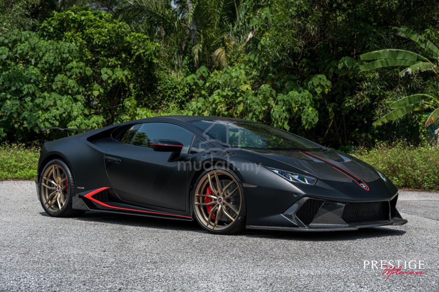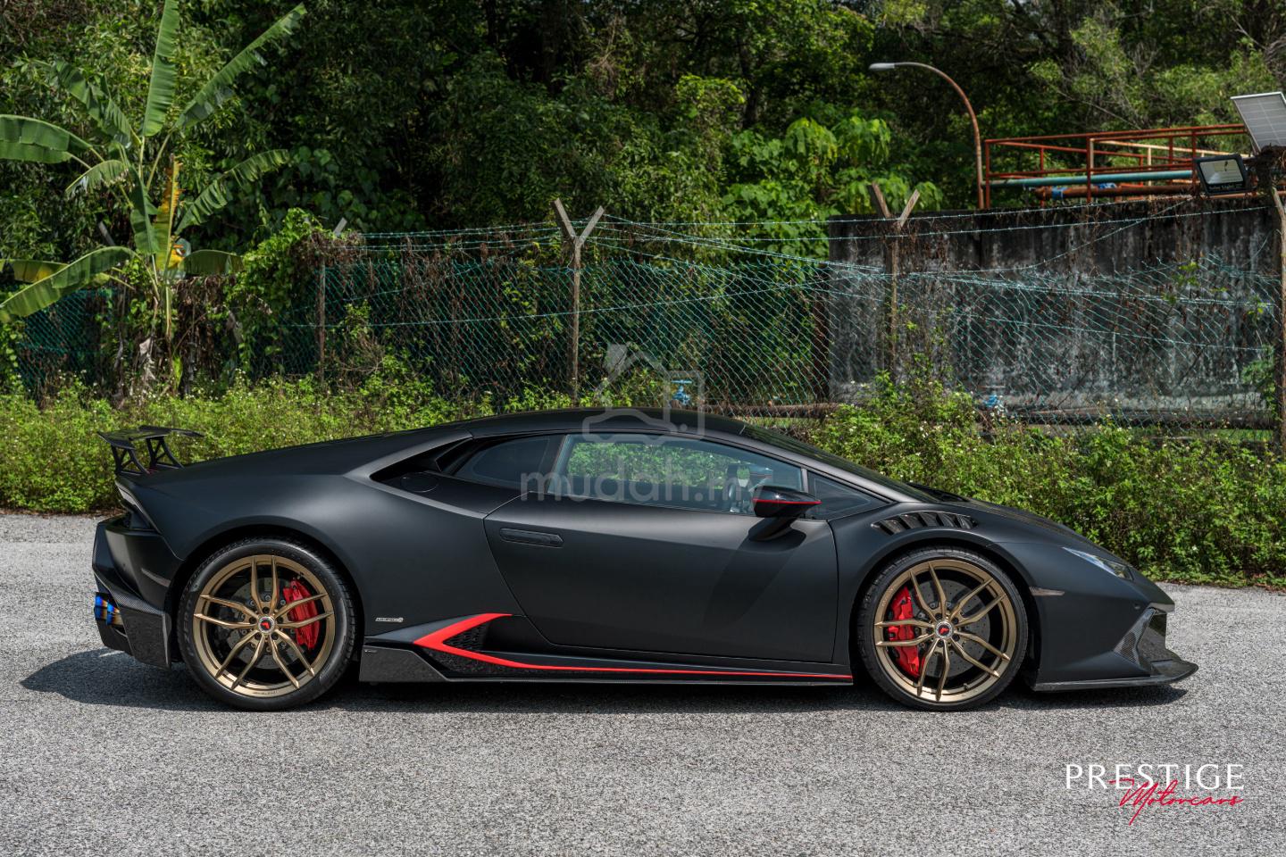 For Sale: 2014 Lamborghini Huracán LP610-4 in Bianco Monocerus (now wrapped in Satin Matte Black) and Nero Ade & Nero Cosmus Leather Alcantara interior. This vehicle is presented great factory specification, complemented by genuine Vorstenier Novara Edizione Carbon Fiber Aero Kit, Vostenier V-FF 105 Wheels (worth RM207,547.92), and Power Craft Hybrid Exhaust System (worth RM 23,211.96) delivering a visceral and spine tingling soundtrack.The 2014 Lamborghini Huracán represents a defining moment in the marque’s evolution, the point at which Lamborghini distilled everything it had learned from the Gallardo into a sharper, more technologically advanced and thoroughly modern V10 supercar.As the first iteration of the Huracán lineage, this model laid the foundation for all subsequent variants. It introduced a new level of refinement, precision and everyday usability, whilst retaining the raw, naturally aspirated character that has long defined Lamborghini’s identity. In today’s context, it stands as an increasingly significant car – not merely as an entry point into the Huracán family, but as part of the final generation of naturally aspirated V10 supercars before the inevitable transition towards hybridisation.At its heart lies a 5.2-litre naturally aspirated V10, producing 610hp and 560Nm of torque. Free from turbocharging, the engine delivers power with remarkable linearity and immediacy, accompanied by a distinctive high-revving soundtrack synonymous with Lamborghini’s modern era. Coupled with a dual-clutch transmission and all-wheel drive system, the Huracán accelerates from 0-100 km/h in just 2.9 seconds, offering performance that remains formidable even by contemporary standards.As Chris Harris once remarked when reviewing the car “It’s brutally fast, but what defines it is the way that V10 sings – it turns every drive into an event.”, a sentiment that perfectly encapsulates the Huracán’s enduring appeal.In an era increasingly defined by downsizing and electrification, the Huracán stands as a purist’s machine, a naturally aspirated, high-revving V10 supercar that embodies the final chapter of a celebrated engineering philosophy. As such, it represents not only an exceptional driving experience, but also a compelling opportunity for those seeking a future classic with enduring significance.Prestige Motorcars is proud to present this exceptionally rare aftermarket specced 2014 Lamborghini Huracán LP610-4 in Bianco Monocerus (now wrapped in Satin Matte Black) and Nero Ade & Nero Cosmus Leather Alcantara interior. Registered in Malaysia in Q2 2016 and having covered just 27,996km+, this meticulously maintained example remains in outstanding condition. The exterior alone is further enhanced by a comprehensive Vorsteiner Novara Edizione Carbon Fiber Aero programme, including a carbon bonnet, front bumper, splitter, side skirts, rear bumper, diffuser, rear wing, and wheels amounting to a stanngering RM207,547.92 worth of parts alone. Subtle yet impactful red stripe accents across the bonnet, mirrors and rear fender skirts provide a cohesive visual contrast.Performance and driving dynamics are equally well considered. The car is equipped with Lamborghini carbon ceramic brakes (CCB) for exceptional stopping power, alongside a front-axle lifting system for added practicality. A Power Craft Japan Hybrid Exhaust System with titanium exhaust tips (worth RM 23,211.96) and BMC High-Flow Air Filters further elevate both acoustic character and engine responsiveness.Inside, the cabin is trimmed in a unicolour Nero Ade & Nero Cosmus alcantara and leather combination, offering a balance between luxury and motorsport-inspired intent. Sport seats upholstered in the same materials provide both comfort and support, while Rosso Alala contrast stitching introduces a refined yet sporting detail throughout. A car to be acquired with confidence and driven with appreciation for what it represents.This 2014 Lamborghini Huracán LP610-4 is factory equipped and modified with the following features:-- 5.2 L NA V10 producing 610hp/560Nm- 7-Speed Dual Clutch Automatic Transmission- Bianco Monocerus Exterior (White)- Satin Matte Black Exterior (Now Wrapped)- Nero Ade & Nero Cosmus with Contrast Rosso Alala Stitching Sportivo Interior- Vorsteiner Huracan Novara Edizione Aero Front Bumper w/ Front Spoiler (worth RM32,096.94)- Vorsteiner Huracan Novara Edizione Aero Front Fenders w/Integrated Vents and Splash Shields 2x2 Gloss Carbon (worth RM50,339.23)- Vorsteiner Huracan Performante Vicenza Edizione Aero Bonnet 2x2 Gloss Carbon (worth RM41,218.18)- Vorsteiner Huracan Novara Edizione Aero Side (worth RM16,237.82)- Vorsteiner Huracan Novara Edizione Aero Wing Blade w/ Aluminum Uprights (worth RM13,859.09)- Vorsteiner Huracan Novara Edizione Aero Rear Bumper w/ Rear Diffuser (worth RM41,219.31)- Brake Callipers in Rosso (Red)- Carbon Ceramic Brakes- Vehicle Lifting System- Emblem Embossed on Headrest- Multi-Function Steering Wheel in Leather- Multi Way Electrically Adjustable Seats with Heating- Reverse Camera System & Front Parking Sensors- Rearview Mirror with Integrated Compass Display- BMC High-Flow Air Filters- Power Craft Japan Hybrid Exhaust System with titanium exhaust tips (worth RM 23,211.96)- 20-Inch Vostenier V-FF 105 Wheels in Matte Gold (worth RM11,438.76)- Pirelli P Zero PZ4 Tyres- UK Supplied, Registered in Q2 2016Life is far too short to compromise on the purchase of a sports car, so why not purchase this appreciating supercar and have the enjoyment of driving and owning a legendary Lamborghini at the same time. A stunning car and a jewel in the crown of one of the greatest Italian automaker, this one of the very last modern V10 Lamborghini’s that must be experienced in this life time.We are car enthusiasts ourselves, and we hand pick this calibre of vehicle as a matter of course when we are looking to stock our luxury inventory. In fact, we are as fussy as any buyer is, when it