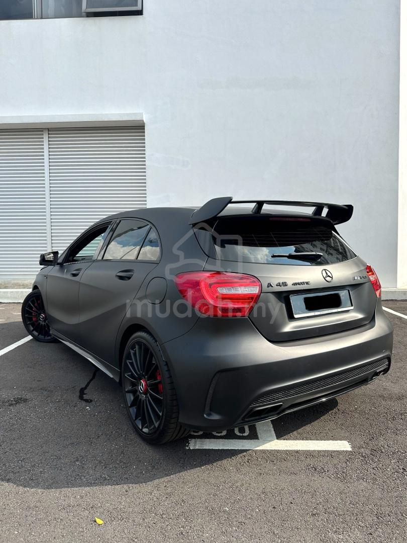 Mercedes Benz A45 Edition 1 2.0 Bi-Turbo-CBU Import new by NZ Wheels-Limited Edition 1 unit.-Manufacture 2014 Register Nov 2014-1 Owner use only, use as my 5th car.-62k km use only, Ori Mileage.-Fully Stock condition not remap and any mod.-Front wrapped 3M Matte Black with door pillar *worth RM8k*-Ori paint Cirrus White with AMG Stripes-19 inch Original AMG wheels-4pcs Hankook S1 EVO 3 tyre with 90% condition.-Original AMG 6pot RED brake caliper -Original AMG Spoiler-Full Leather Electric Recaro Bucket seat with RED stripes, condition as new.-Semi Alcantara with Leather Steering -10inch Android Player with Apple CarPlay function-Reverse camera-Panoramic Roof -Heated Seat-AMG Floor Mat-AMG RED colour Seatbelt -Original Owner Manual Booklet-AMG Engine cover logo badge *no crack*-Engine and Gearbox all in smooth condition-100% Accident Free, Engine and Gearbox Tiptop conditon.-Direct Owner deal no processing fees, can nego for serious buyer.Call / WhatsApp: 01125213286 RayzPrice: RM92,300 cheapest in town and resonable price.