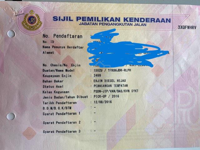 ENGINE DIESEL TURBO 2.5 MANUAL VGS 136 horse power LOW FUEL.4X2 MANUAL (M) REAR 2WD HI RIDEYEAR MAKE 2016 (M) MANUAL FULL TANK 76 litre CAN RUN ABOVE 700Km to 900kmaverage 8.1 litre per 100km can run.NEW ABSOBER.NEW PAINT.NEW CLUTCH .NEW TYRES 2 PCSENGINE NO LEAKING , NO BLACK SMOOKE.LOW FUEL DESIGN MODEL.ACCIDENT FREE.NO FLOODED.INTERIOR CLEAN AND TIDY.LOAN 15,000 FOR 5 YEARS REPAYMENT PER MONTH RM 300(BANK LOAN)BUY AND DRIVE CONDITION.WELL MAINTAIN.ADDRESS:20 JALAN SELANGOR SEKSYEN 4,PETALING JAYA , SELANGOR.**NEAR ASSUNTA HOPSITAL ,OPPOSITE PETRON STATION BUNGALOW'S LOT 20**WAZE:ECOSAVE AUTO ENTERPRISE PHANG-019-3283487