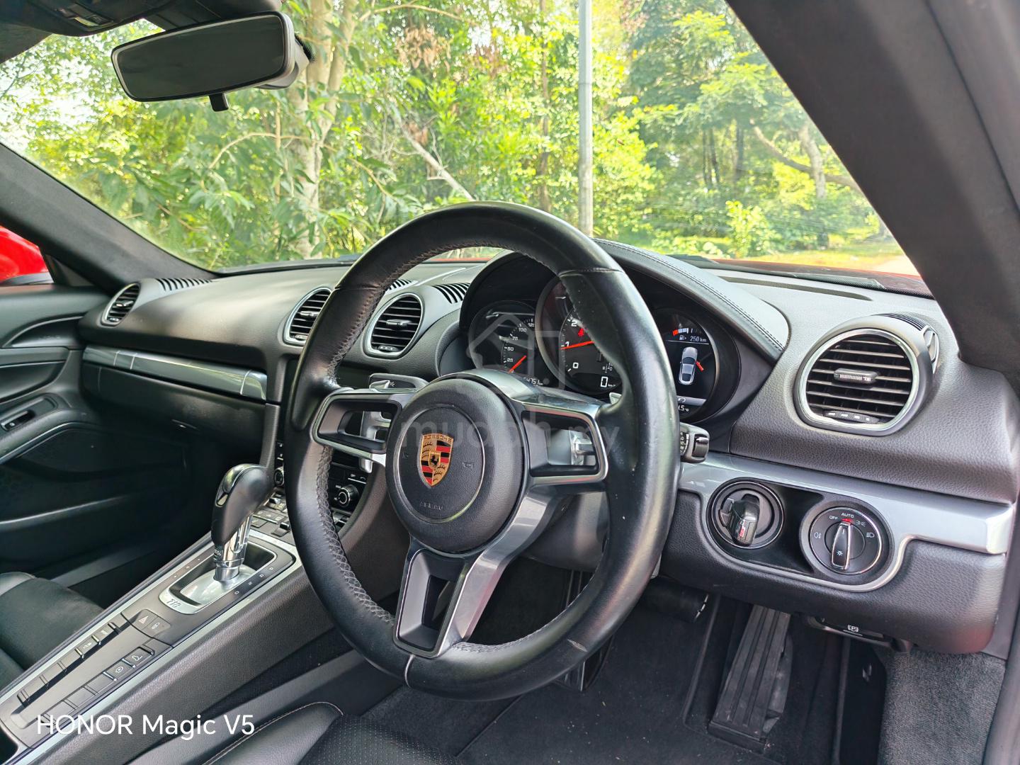 PORSCHE 718 CAYMAN 2.0 T (A) Turbo PDK Dual Clutch Sport Coupe High Spec!Year Made: 2017Year Registered: Jan 2021One VIp OwnerCheapest in Town1,988 cc Power : 300 bhp Torque : 380 Nm Transmission : 7-Speed Porsche Doppelkupplung ( PDK ) 0-100 km/h : 4.7 sec. Top Speed : 275 km/h*** Remark! Pictures shown are actual car! immediate viewing can arrange by appointment.*** Come with PDLS ,Sport chrono, Sport Exhaust, Alcantara Sport steering wheel, GT4 Kits 20' sport rims wheel,*** Specification & Condition ***~ GT4 Body kits~ PDLS Light, LED fog light,~ Ori 20 "sport rims wheel~ Sport exhaust system~ Tiptronic gear box,F1 paddle shift~ ECO Mode~ Auto light package~ Digital dual zone air con'd~ Porsche Doppelkupplung ( PDK )~ Speed Limit Indicator~ Sports Steering Wheel and PDK Gear~ Porsche Communication Management ( PCM )~ Air bags (SRS)~ ABS ,ESP~ Super clean interior KINDLY CONTACT EDDIE @ 016-3201818