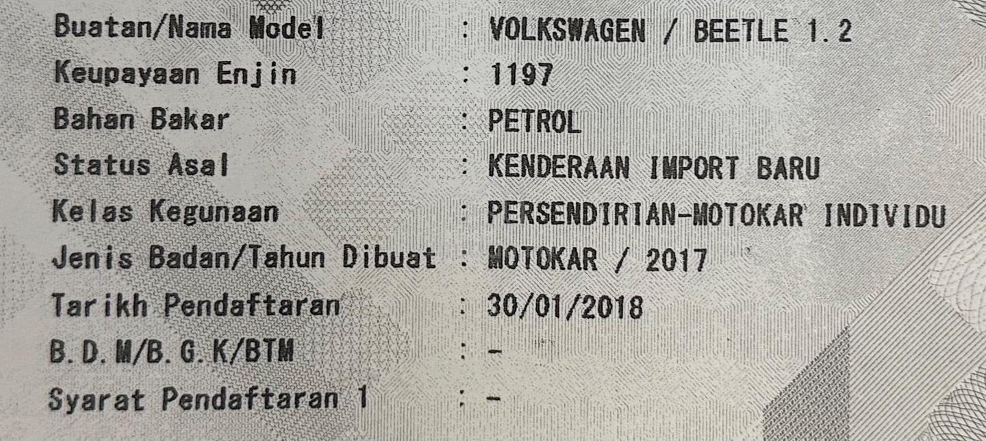 Please Contact Our SA for appointment ↘️↘️↘️↘️⬇️⬇️⬇️⬇️⬇️↙️↙️↙️↙️🧑🏻🦰 Nick 010-661 1003🧑🏻🦰 Charles Chin 017-350 3350🧑🏻🦰 Milo 016-900 1221🕴️Jun 016-344 0962🧑🏻🦰 Kashton Yaw 019-413 4119🧑🏻🦰 Oscar 018-323 2066‼️CHEAPEST IN MARKET‼️🔥2017 REG 2018 Volkswagen BEETLE 1.2 TSI SPORT (A)🔥🎈CBU SPEC🎈Year Make 2017🎈Year register 30/01/2018🎈Mileage Only done 71,xxx km🎈On time Service🎈Cruise control🎈Full Leather Seats🎈Multifunction Steering🎈Nice Condition✅Loan up to 6-7 yearsInstant Portfolio Sdn Bhd (338027-P)LOT 53548 JALAN BESI KAWI, TAMAN SG BESI 57100 KLOffice Hour :Mon - Sat 9:30am to 6:30pmSun - 10:30pm to 5:00pm