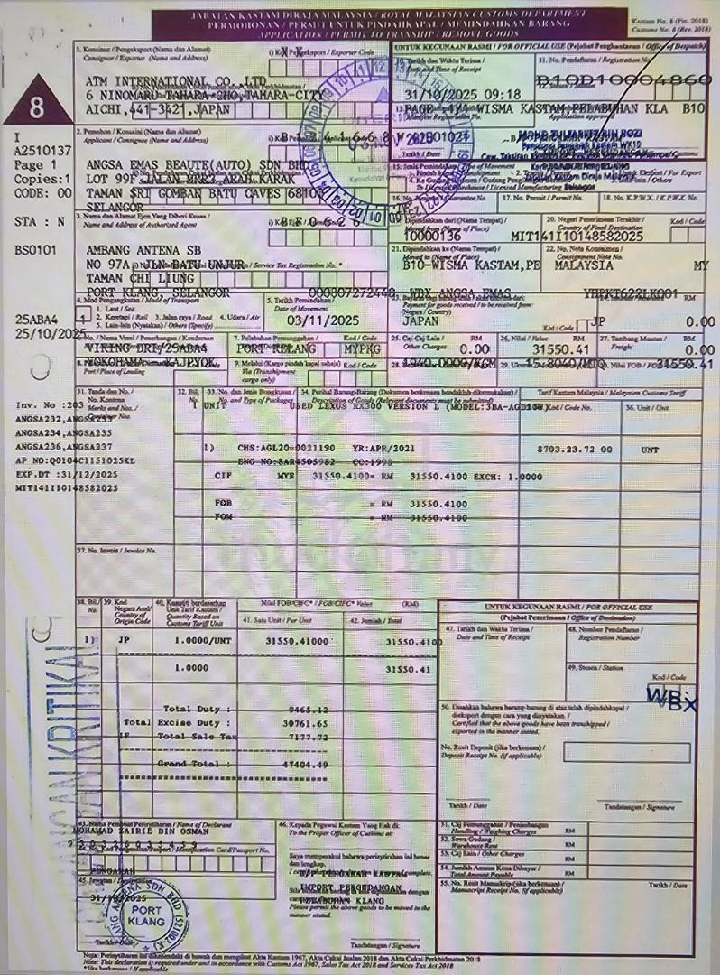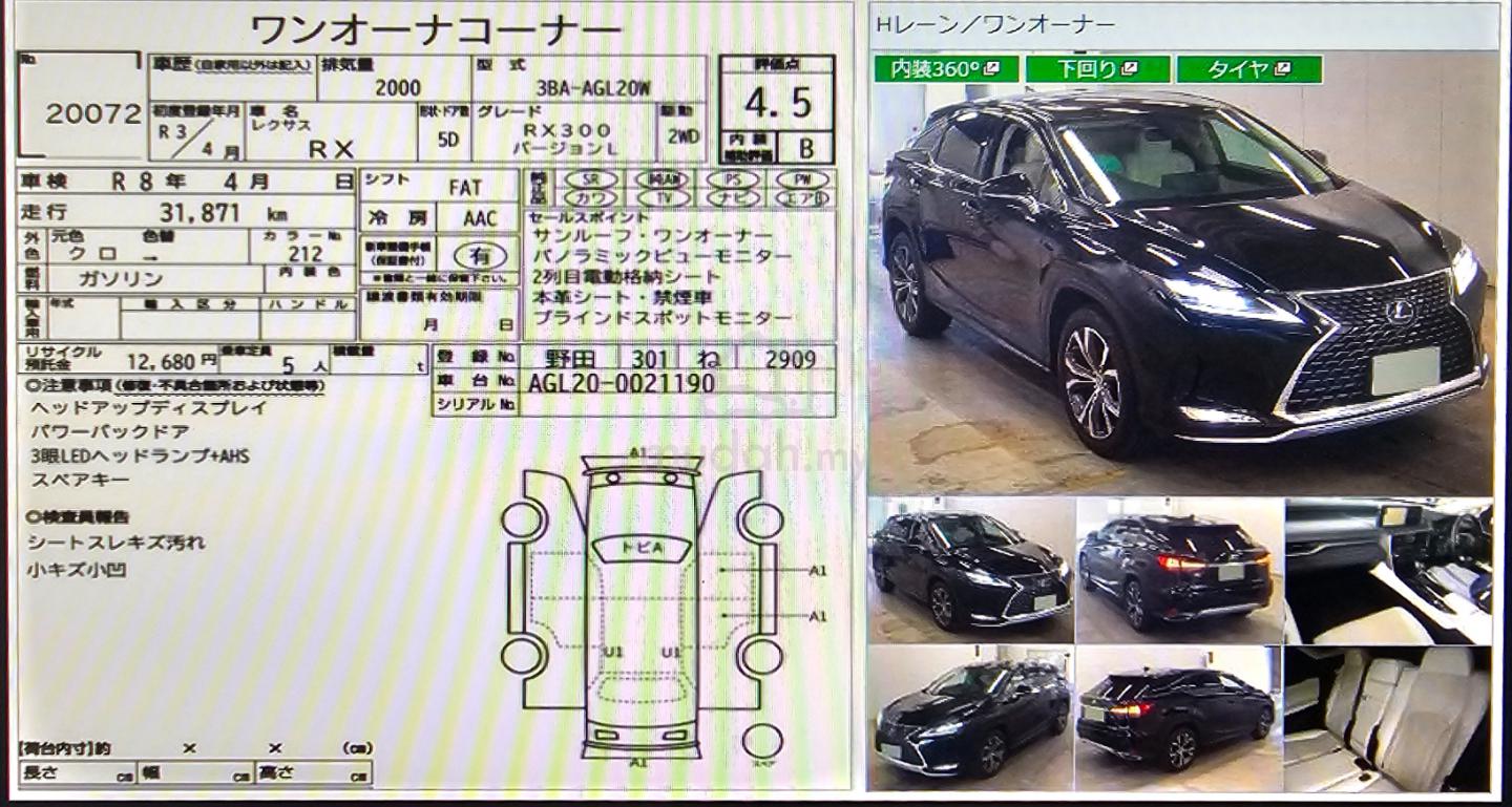 2021 LEXUS RX300 VERSION L* YEAR MADE 2021* UNREGISTERED* JAPAN SPEC* LOCAL AP* 4.5 GRADE * ORIGINAL MILEAGE 31K KM* CHS : 021190 BEST PRICE RM 219,000 WITH SST !!BEST PRICE RM 219,000 WITH SST !!FREE 5~8 𝗬𝗘𝗔𝗥𝗦 𝗘𝘅𝗰𝗹𝘂𝘀𝗶𝘃𝗲 𝗘𝘅𝘁𝗲𝗻𝗱𝗲𝗱 𝗪𝗮𝗿𝗿𝗮𝗻𝘁𝘆(𝙀𝙣𝙜𝙞𝙣𝙚, 𝙀𝘾𝙐, 𝙏𝙧𝙖𝙣𝙨𝙢𝙞𝙨𝙨𝙞𝙤𝙣, 𝙏𝙪𝙧𝙗𝙤, 𝙎𝙩𝙚𝙚𝙧𝙞𝙣𝙜 𝙍𝙖𝙘𝙠, 𝙎𝙚𝙣𝙨𝙤𝙧, 𝘼𝙞𝙧-𝘾𝙤𝙣𝙙, 𝘾𝙤𝙤𝙡𝙞𝙣𝙜 𝙎𝙮𝙨𝙩𝙚𝙢, 𝙁𝙪𝙚𝙡 𝙎𝙮𝙨𝙩𝙚𝙢 & 𝙐𝙣𝙡𝙞𝙢𝙞𝙩𝙚𝙙 𝙈𝙞𝙡𝙚𝙖𝙜𝙚) OPEN SERVICE * 2.0L TURBOCHARGED* 232 HP / 350 NM* 2 TONE INTERIOR* HEAD UP DISPLAY ( HUD )* WHITE LEATHER SEATS* FRONT ELECTRONIC SEATS* REAR ELECTRIC SEATS* PARAROMIC ROOF * FRONT CLIMATE CONTROL SEATS* POWER BOOT* 4 LED HEADLAMP* MULTIFUNCTION STEERING* LANE KEEP ASSIST (LKA)* PRE-CRASH SYSTEM (PCS)* BLIND SPOT ASSIST (BSM)* SURROUND CAMERA (360° VIEW)* SPORT MODE* PUSH START* KEYLESS ENTRY* 20" ALLOY WHEELPLS CALL SIMON LEE 012 396 2938
