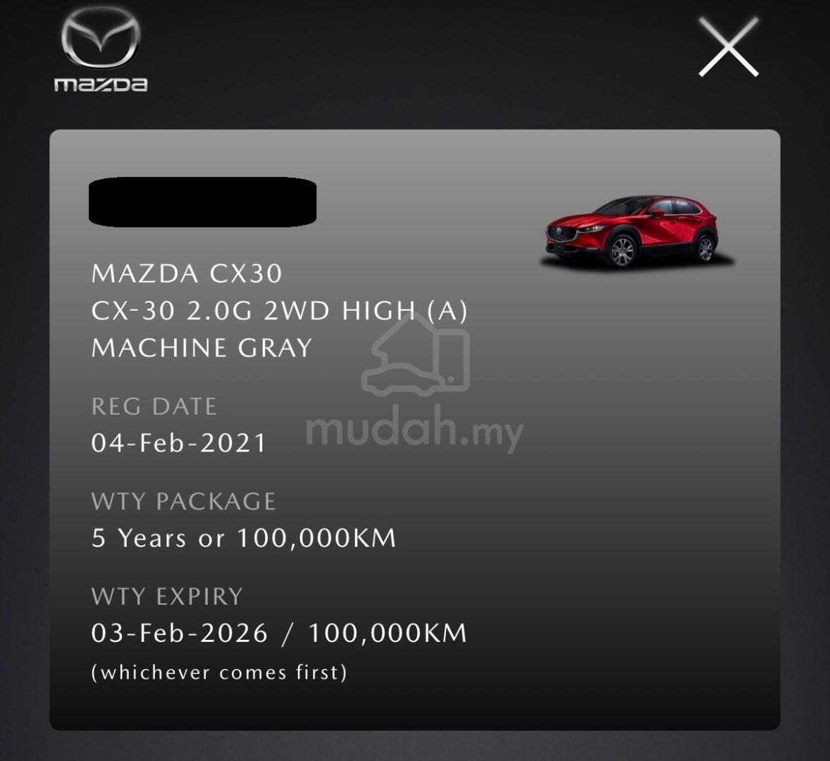 ## WELCOME TO CTN AUTO SDN BHD ##- TRUE YEAR MAKE (VERIFY)- GET EASY & FAST LOAN APPROVAL- GET BANK LOW INTERST RATE- HIGH TRADE IN (CHANGE CAR)- YOUR TRUSTED CAR DEALER IN TOWN𝐀𝐃𝐃𝐘 𝟎𝟏𝟏-𝟏𝟔𝟖𝟖 𝟏𝟐𝟗𝟎𝐀𝐋𝐄𝐗 𝟎𝟏𝟎-𝟐𝟎𝟒𝟏 𝟏𝟓𝟏𝐕𝐈𝐍𝐍 𝟎𝟏𝟔- 𝟗𝟏𝟕𝟔 𝟐𝟔𝟑𝐌𝐄𝐋𝐕𝐈𝐍 𝟎𝟏𝟐-𝟓𝟓𝟒𝟒 𝟔𝟖𝟎𝐉𝐀𝐂𝐊 𝟎𝟏𝟐-𝟔𝟗𝟑𝟎 𝟐𝟕𝟑𝐂𝐇𝐄𝐎𝐍𝐆 𝟎𝟏𝟔-𝟔𝟓𝟓𝟐 𝟔𝟔𝟔## 2021 MAZDA CX-30 2.0 HIGH PLUS- FULL SPEC- CBU (SUNROOF)- TRUE YEAR MAKE 2021- REGISTER DATE 04/02/2021- LOW MILEAGE 71K KM ONLY- FULL SERVICE RECORD BY MAZDA## MAZDA CX30 HIGH PLUS 2.0 (A)- 2.0L Skyactiv-G Engine- 162Hp & 213Nm- Skyactiv-Drive 6-Speed Automatic- Manual Shift Mode (Paddle Shift)- Sunroof- Leather Seat- Memory Power Seat- Multi Function Steering- Lane Keep Assist- Auto Cruise Control- Power Boot- Sport Mode- Head Up Display (HUD)- Apple CarPlay / Android Auto- Mode Safety Function... ---------------------------------------------## SHOWROOM LOCATION ##- LEVEL P3 / CTN AUTO SDN BHD- CTN AUTO SDN BHDZV-12-02, ZEVA RESIDENCE, PSRN PINGGIRAZN PUTRA,BANDAR PUTRA PERMAI, 43300 SERI KEMBANGAN,SELANGOR DARUL EHSAN- (GPS SEARCH : CTN AUTO SDN BHD, ZEVA RESIDENCE )FASTER CALL / WHATSAPP TO US FOR MORE PROMOTION !BEFORE YOU VISIT US , PLEASE CALL US 1ST !!~𝐀𝐃𝐃𝐘 𝟎𝟏𝟏-𝟏𝟔𝟖𝟖 𝟏𝟐𝟗𝟎𝐀𝐋𝐄𝐗 𝟎𝟏𝟎-𝟐𝟎𝟒𝟏 𝟏𝟓𝟏𝐕𝐈𝐍𝐍 𝟎𝟏𝟔- 𝟗𝟏𝟕𝟔 𝟐𝟔𝟑𝐌𝐄𝐋𝐕𝐈𝐍 𝟎𝟏𝟐-𝟓𝟓𝟒𝟒 𝟔𝟖𝟎𝐉𝐀𝐂𝐊 𝟎𝟏𝟐-𝟔𝟗𝟑𝟎 𝟐𝟕𝟑𝐂𝐇𝐄𝐎𝐍𝐆 𝟎𝟏𝟔-𝟔𝟓𝟓𝟐 𝟔𝟔𝟔PLEASE GIVE US A CHANCEFASTER CALL / WHATSAPP TO US FOR MORE PROMOTION !BEFORE YOU VISIT US , PLEASE CALL US 1ST !!~𝐀𝐃𝐃𝐘 𝟎𝟏𝟏-𝟏𝟔𝟖𝟖 𝟏𝟐𝟗𝟎𝐀𝐋𝐄𝐗 𝟎𝟏𝟎-𝟐𝟎𝟒𝟏 𝟏𝟓𝟏𝐕𝐈𝐍𝐍 𝟎𝟏𝟔- 𝟗𝟏𝟕𝟔 𝟐𝟔𝟑𝐌𝐄𝐋𝐕𝐈𝐍 𝟎𝟏𝟐-𝟓𝟓𝟒𝟒 𝟔𝟖𝟎𝐉𝐀𝐂𝐊 𝟎𝟏𝟐-𝟔𝟗𝟑𝟎 𝟐𝟕𝟑𝐂𝐇𝐄𝐎𝐍𝐆 𝟎𝟏𝟔-𝟔𝟓𝟓𝟐 𝟔𝟔𝟔- CTN AUTO SDN BHD- WE ARE OPEN 7 DAYS A WEEK- 9:00am - 7:00pm (MONDAY TO SATURDAY)- 11:00am - 5:00pm (SUNDAY / PUBLIC HOLIDAY)* Please kindly leave me a short message if I am not able to pick up yourcall. I will get back to you once I am available. TQ