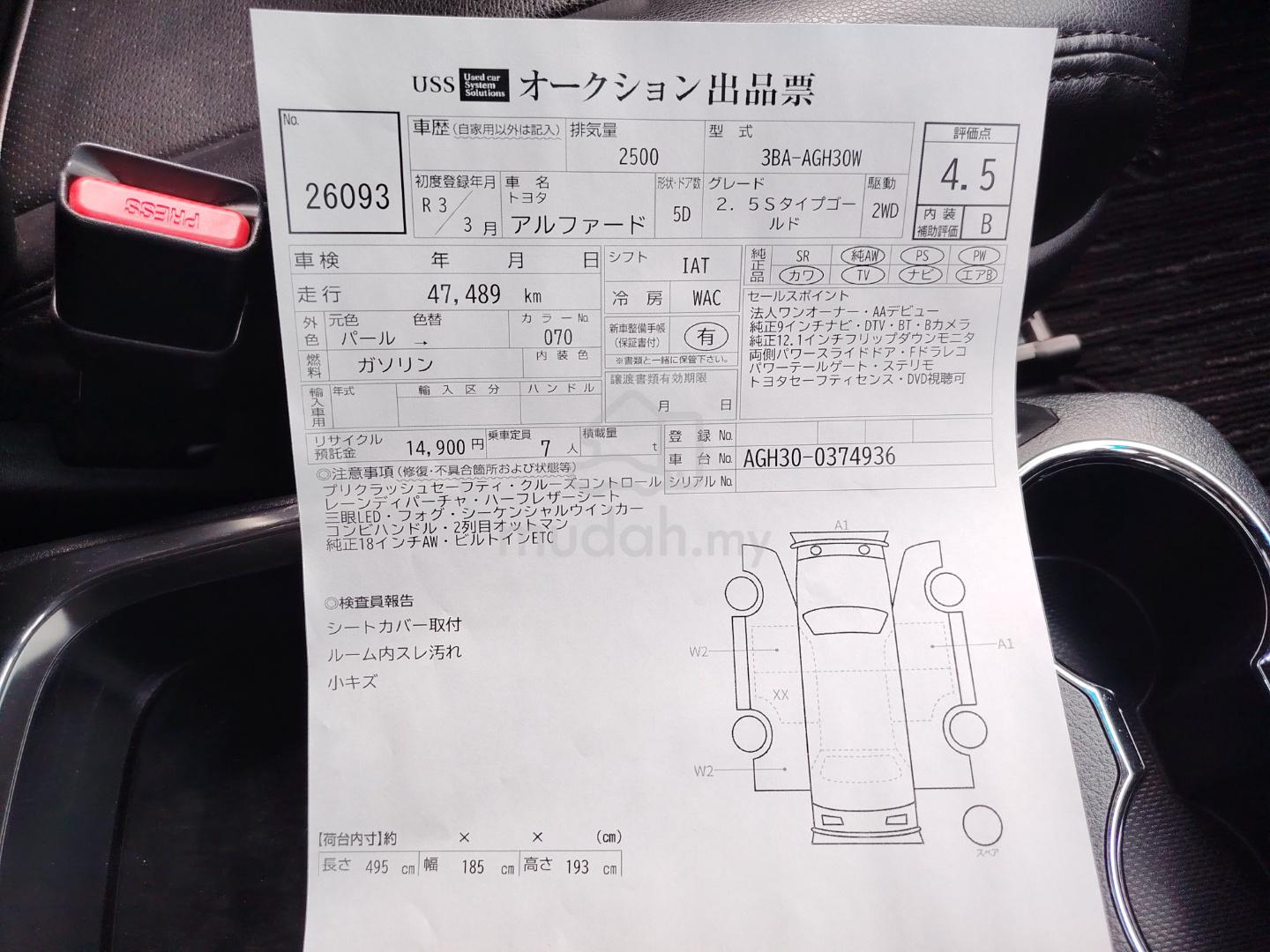 Sales PromotionSuper Offer Price . . .R M 1 5 9 , 0 0 0 inculuded all taxContact Person JACK012 677 7477>>>>>>>>>>>>>>>>>>>>>>>>>* TOYOTA ALPHARD 2.5 S TYPE GOLD SPEC* MANUFACTURED YEAR 2021 UNREGISTERED* ORIGINAL FULL MODELISTA 2 BODY KIT (( OPTOINAL ))* ORIGINAL S SPEC TYPE GOLD* ORIGINAL MILEAGE 47 , 502 km* 7 ALCTARA SEATER* 2 POWER DOOR* POWER BOOT* MULTI FUNCTION STEERING* ORIGINAL REAR CAMERA* DIGITAL INNER MIRRIOR ( DIM )( OPTOINAL )* BLIND SPORT MONITOR ( BSM )( OPTOINAL )* SPORT GRILL* SUNROOF & MOON ROOF ( OPTOINAL )* 18 INCH ALLOY WHEEL SPORT RIM* AUTO CRUISE CONTROL* ABS BRAKE SYSTEM* ROOF MONITOR * S/ TYRE ( OPTOINAL )* AIR BAG* NANOE* ENGINE 2493cc* 4 CYLINDER* 7 SPEED SPORT SEQUENTIAL SHIFTMATIC* SUPER CVT-I POWER ENGINE* MAX POWER : 180 HORSE POWER@6,000RPM* MAX TORQUE : 235NM @ 4,100 RPM* TIP TOP CONDITION* EXCELLENT CONDITION* SEE TO BELIEVE* FOLLOW MARKET PRICE* NO GST CHARGES* OUR PRICE INCLUDED GST* NO WORRIES FINANCE* WE ARE PLATINUM DEALER* FAST LOAN APPROVED* EASY LOAN APPROVED* HIGH LOAN APPROVED* LOW INTEREST RATEOFFER PRICE R M 1 5 9 , 0 0 0 inculuded all tax* ALL MODEL TRADE IN ARE WELCOME* HIGH TRADE IN VALUE . UP 1K TO 3K* BROKER OR DEALER ARE WELCOME* OUT STATION CUSTOMER ARE WELCOME* I WILL TRY TO MEET YOUR REQUIREMENTS* FOR MORE DETAIL PLEASE CONTACT :* 012 677 7477 MR JACK * 4936 *