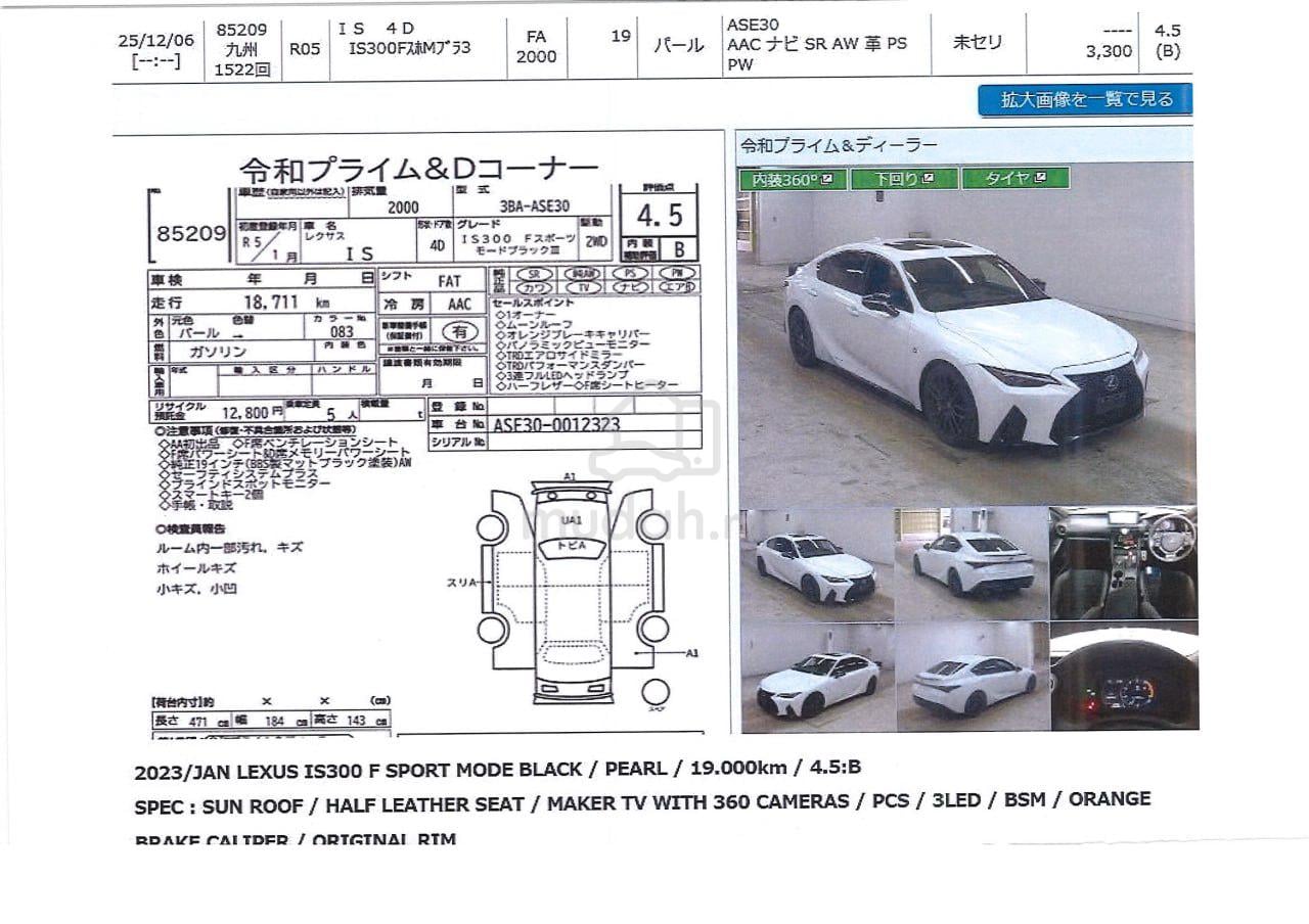 2023 Lexus IS300 F-Sport 2.0 - Mode Black Edition18,700 km done only !!- Inspection Report Attached - Photo 2Engine:2.0L Turbo Charged EnginePower Output: 241 Horse PowerTorque: 258 lb-ftGearbox: 8 - Speed TransmissionSpecifications Included:Mode Black PackageOrange Brake Calipers360 Surround Cameras3 LED HeadlampSun RoofBlind Spot Monitoring Sensors (BSM)Digital Inner MirrorStandard Equipent:Latest Digital Meter DisplayDriving Mode Selection: Eco, Normal, Sport, Sport+Front & Rear Parking SensorsAdaptive Cruise Control (ACC)Pre-Crash System (Collision Prevention System )Lane Keep Assist (LKA)Sway Away Warning SystemBlindspot Monitoring Sensors (BSM)Lane Keep Assist (LKA)Intelligent Clearance Sonar(ICS)Rear Cross Traffic Alert (RCTA)Auto High Beam SystemTyre Pressure Measuring System (TPMS)Memory SeatFull Leather SeatsVentilation Seats (AIR-COND SEATS )12.3" MULTIMEDIA DISPLAYApple CarPlay/ Android Auto System: Waze/ Google Map/ Spotify on screenBluetooth Audio19" F-SPORT RIMS*** 6 Years Extended Warranty with open panel workshop eligible ***Coverage:- Engine- Gearbox- Cooling System- Electric Control Unit (ECU)- Fuel System- Air - Conditioner- TurboPlease Contact: 012 - 207 2890 KL Tan