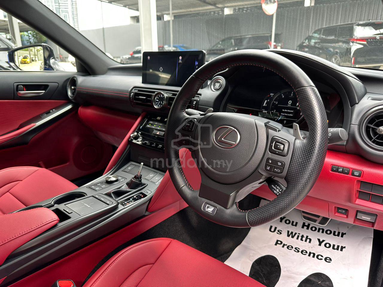 🔥LEXUS IS300 2.0 F-SPORT🔥Manufactured Year: 2023 (Unregistered)Mileages: 20k KM (Low Mileage)Specifications✅ GRADE 5/A✅ RED LEATHER SEAT✅ SPARE KEY✅ PADDLE SHIFT✅ ELETRIC SEAT WITH MEMORY✅ ORANGE CALIPER✅ KEYLESS ENTRY✅ 360 CAM💯 Original Condition 💯☑️ Smooth Engine☑️ Smooth Gearbox☑️ Good Condition☑️ Low Mileage☑️ Accident Free☑️ Genuine Mileage☑️ Full Inspection And Checking Report☑️ Fully Transparent☑️ Trusted Car Dealer💰 **RM238,000**💰‼️NEGO UNTIL LET GO‼️Free Warranty T&C 🔥Free Service 🛠️Free Polish ✨Free Touch Up ✨Please Contact Us For More Information ☺️WhatsApp Or Call ☎️Bernard - 017-8080991Kenneth Chin 016-6000622 Anson - 019-9397813Jone - 019-7906883