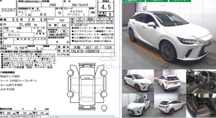 ⭐ AWARDED PLATINUM BANK DEALER ⭐❗❗ FAST APPROVAL - YOUR PROBLEM, OUR SOLUTION ❗❗💥 HUGE OFFERS ON ALL HOT CAR MODELS 💥🎉 LOWEST 1.9 % ~ 2.7% INTEREST RATE 🎉🌈 COMPLIMENTARY 6 YEAR WARRANTY 🌈🌟 PREMIUM RECON CAR CHERAS 🌟🌟 BUY WITH ABSOLUTE CONFIDENCE! 🌟( MANY UNIT CHOICES )* LEXUS RX350 VERSION L * 2023 UNREG* GRADE 4.5B* MILEAGE 32K KM🚗 Engine & Performance• Engine: 2.4L turbocharged inline-4 • Power: 275 hp • Torque: 317 Nm (approx. 317 lb-ft) • Transmission: 8-speed automatic • Drivetrain: AWD (standard) • 0–100 km/h: ~6.6 sec 👉 Big upgrade vs NX250 (more powerful, better pickup )________________________________________🛋 Interior & Features• 9.8” or 14” touchscreen infotainment • Wireless Apple CarPlay & Android Auto • Digital meter cluster • Powered seats with ventilation • Optional Mark Levinson sound system ________________________________________🛡 Safety ( Lexus Safety System )• Adaptive cruise control • Lane keep assist • Head up Display• Blind spot monitor • Pre-collision system • 360 camera✅ BUY WITH ABSOLUTE CONFIDENCE! ✅ Ready Stock Arrived Showroom✅ 100% Genuine Mileage✅ 100% ORIGINAL JAPAN Auction Report✅ SST Fully Duty Paid✅ Unregistered Recon✅ No Hidden Cost✅ Premium Quality: GRADE 4.5A / 5A / 6A⭐ ALL 1 TIME PROCESSING FEE CHRAGES RM1,350⭐ NO HIDDEN CHARGES⭐ 6 Year Warranty Exclusive Extended Warranty( ENGINE, ECU, TRANSMISSON, TURBO, STEERING RACK, SENSOR, AIR-COND, COOLING SYSTEM, FUEL SYSTEM ) *Open Workshop & Unlimited MileageSET AN APPOINTMENT FOR CAR VIEWING TODAY!LOCATION : CHERAS📞 Please Call / Whatsapp:👤 ALEX: 019 - 241 6517📲 Click to chat: https://www.wasap.my/60192416517(First come, first served. Grab your dream car now!)